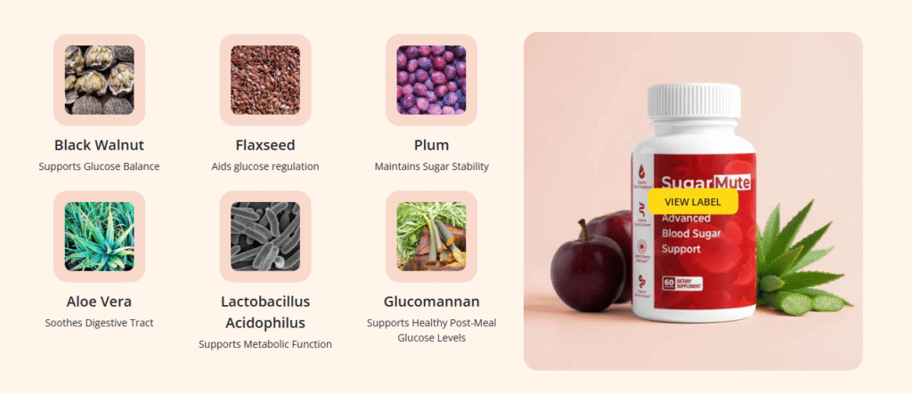 SugarMute is formulated with powerful herbal extracts and natural nutrients that provide comprehensive support for blood sugar balance, metabolic function, and daily energy.